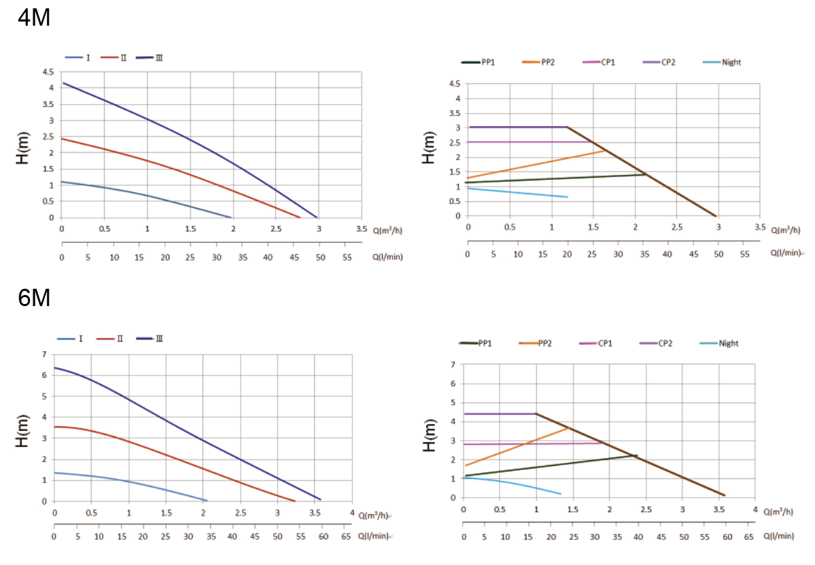 - De 0,5 a 3,5 m3/h com Hm até 6 mca