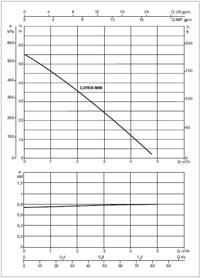 O E.SYBOX Mini 3 não requer nenhum componente adicional para a sua instalação. Consiste em uma electrobomba auto-ferrante de duplo impulsor, gerida por um inversor electrónico, sensor de fluxo e de pressão, ecrã LCD de alta resolução e um vaso de expansão 1L.